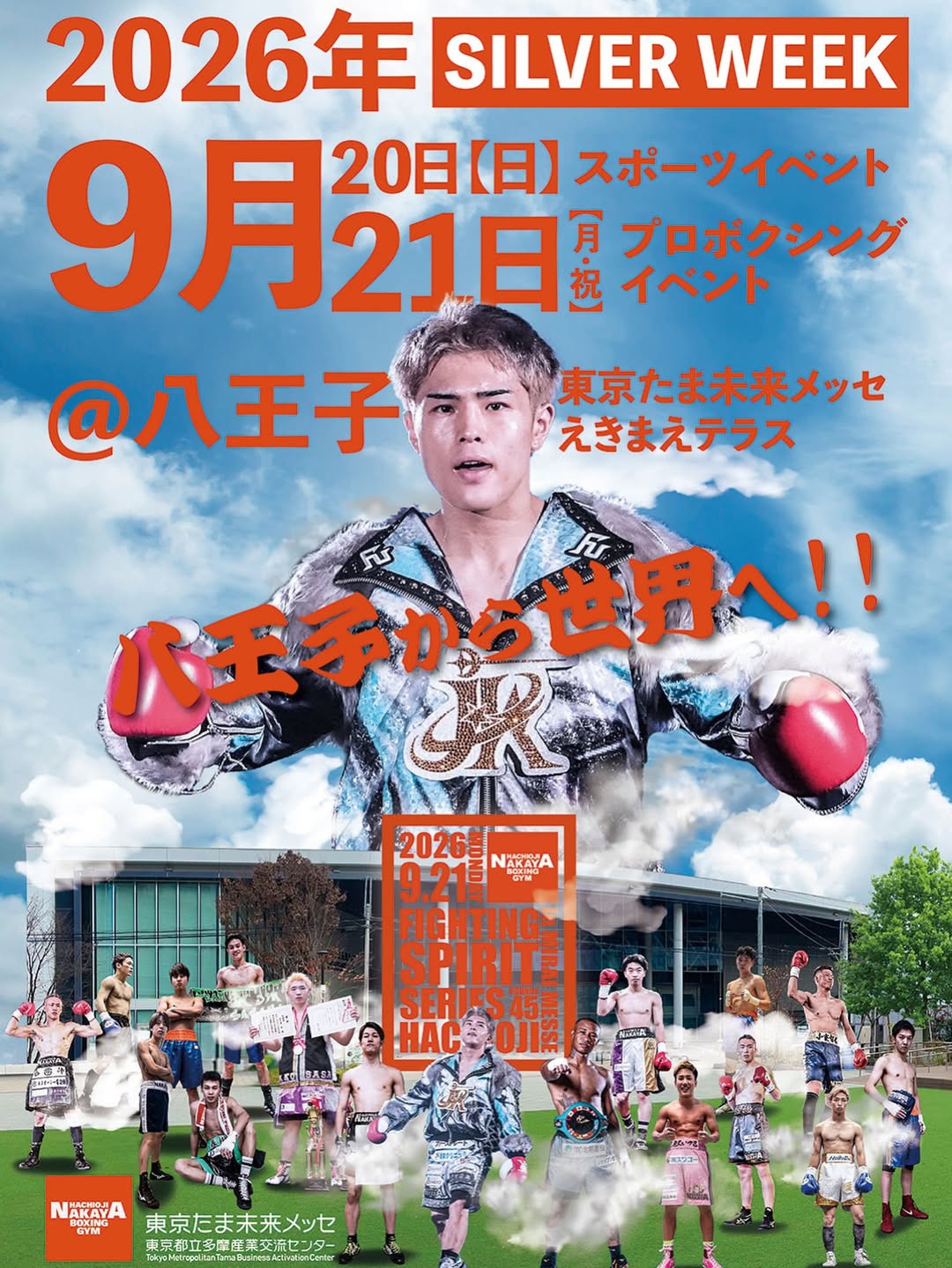 9月20日には「えきまえテラス」で前日計量&スポーツイベント、9月21日午後から「東京たま未来メッセ」でボクシングを6・7試合行う予定です!八王子にゆかりのある選手が多く出るかも?!