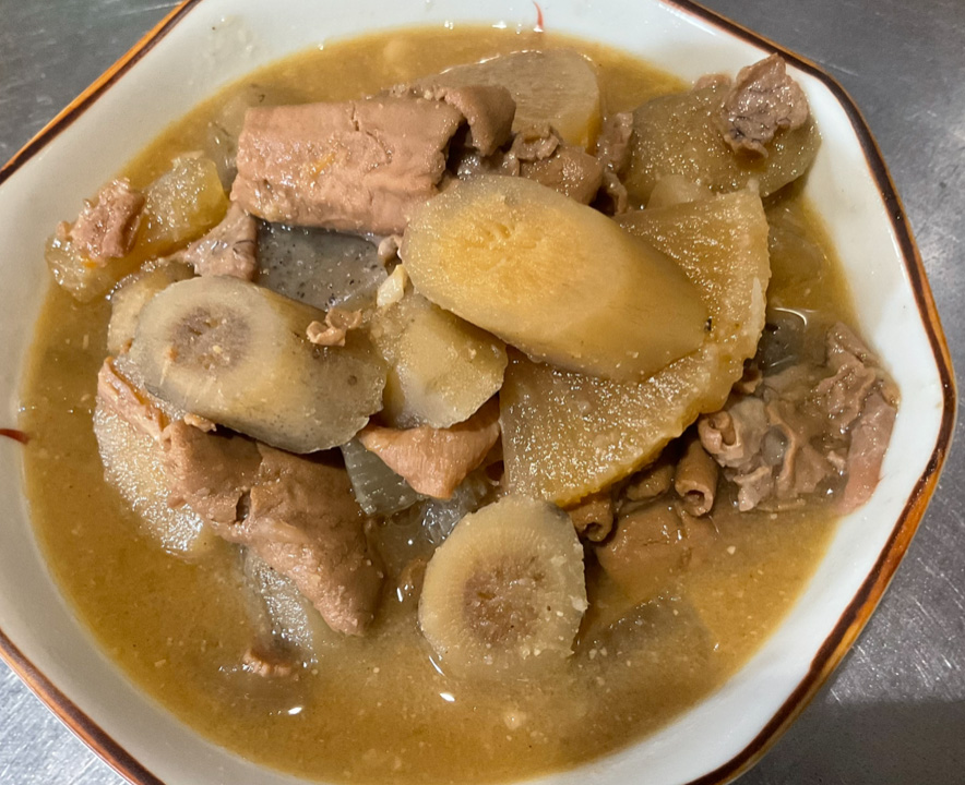 モツ煮込み(400円・税込)。野菜やこんにゃくもゴロっと入っていて、食べごたえ十分!