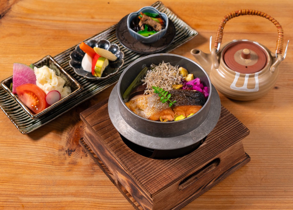 36サウナ整い釜飯(1,650円・税込)。季節ごとの地元・八王子産素材をふんだんに使い、特製出汁でじっくりと炊き上げられています