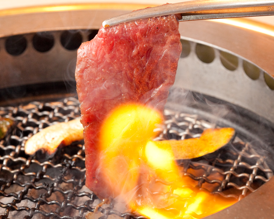 火がついてしまう程に良質な脂がのったカルビ焼きを楽しんで♪