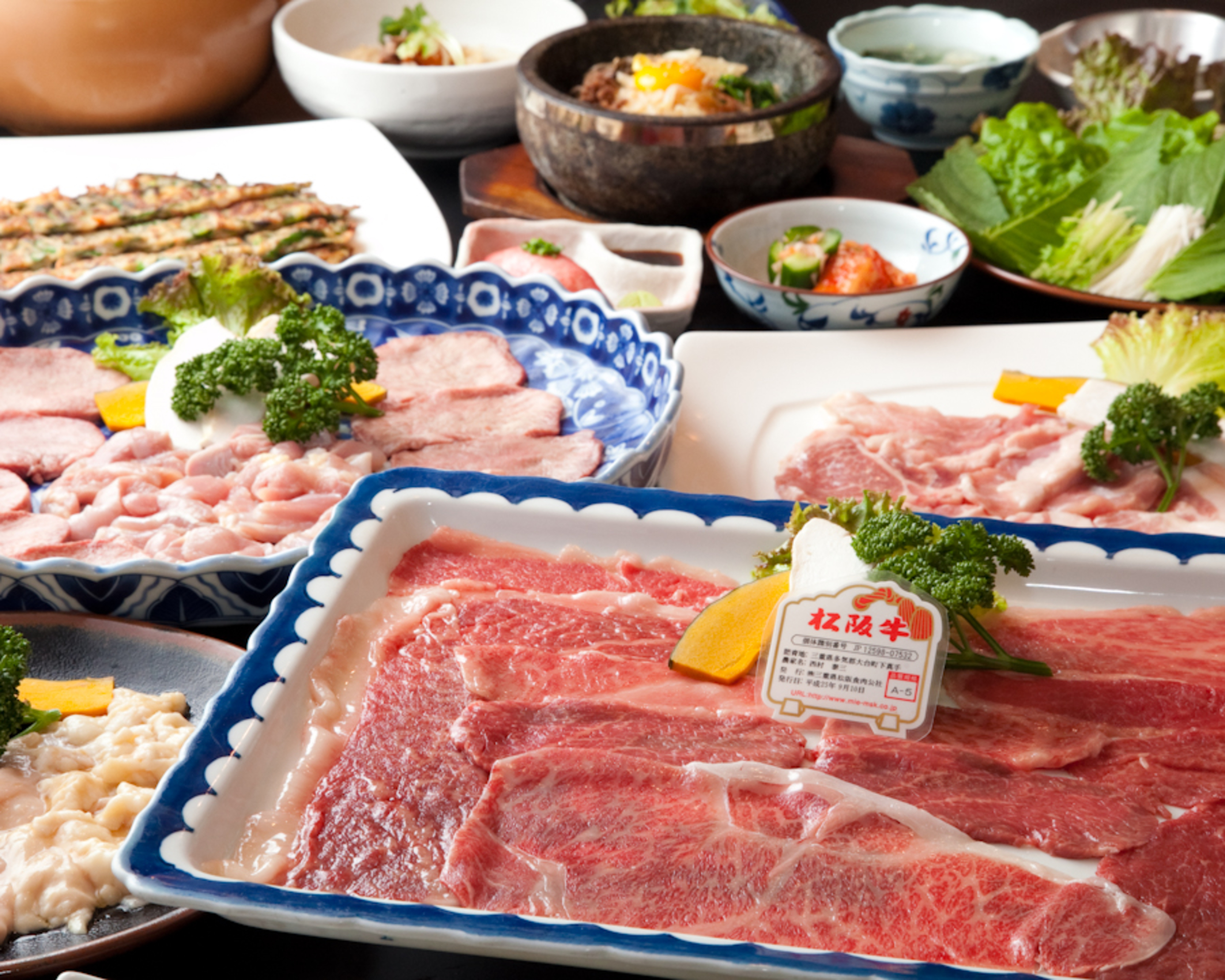 眞一館厳選のお肉を楽しめるコース(6,600円~・税込)や、11:30~15:00限定のランチメニュー等で、自慢の松阪牛焼肉や、韓国から直接仕入れた食材による料理を堪能!